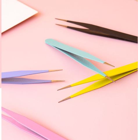 Gekleurde Roestvrijstalen Elleboogpincet Met Rechte Kop Ondersteunt Handelsmerk Op Maat Gemaakte Wimperpincet
